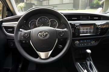 The fluid dashboard is continuous from side to side which accentuates the instrument panel. The 6.1" touch screen helps you control audio, navigation and more. | The available moonroof helps you take in more of the scenery and lets additional light in the new Toyota Corolla. | |