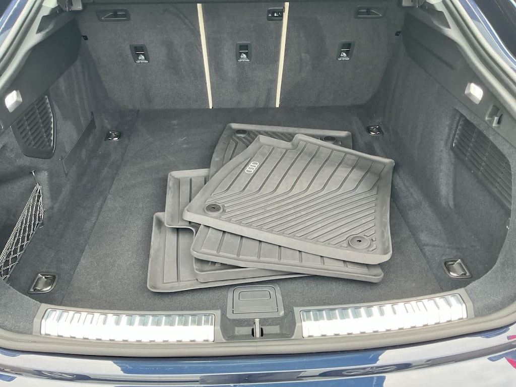 PREMIUM PLUS: LED Interior Lighting Pro Package, Heated Steering Wheel w/Hands-On Detection, Top View Camera System, USB Power Delivery (2x60W Front & 2x100W Rear), Adaptive Cruise Assist, Dynamic Interaction Light, Animation for Taillights, Bang & Olufsen Sound System w/3D Sound, Head-Up Display, LED Headlights Plus w/Digital DRL, Park Assist Plus, FIRMAMENT BLUE METALLIC, AUDI BEAM-RINGS: lower door trim LED light displaying Audi logo (4 rings), Front doors only, AUDI GUARD ALL-WEATHER MATS: front and rear set of black rubber mats (4), Front set features Audi rings logo.