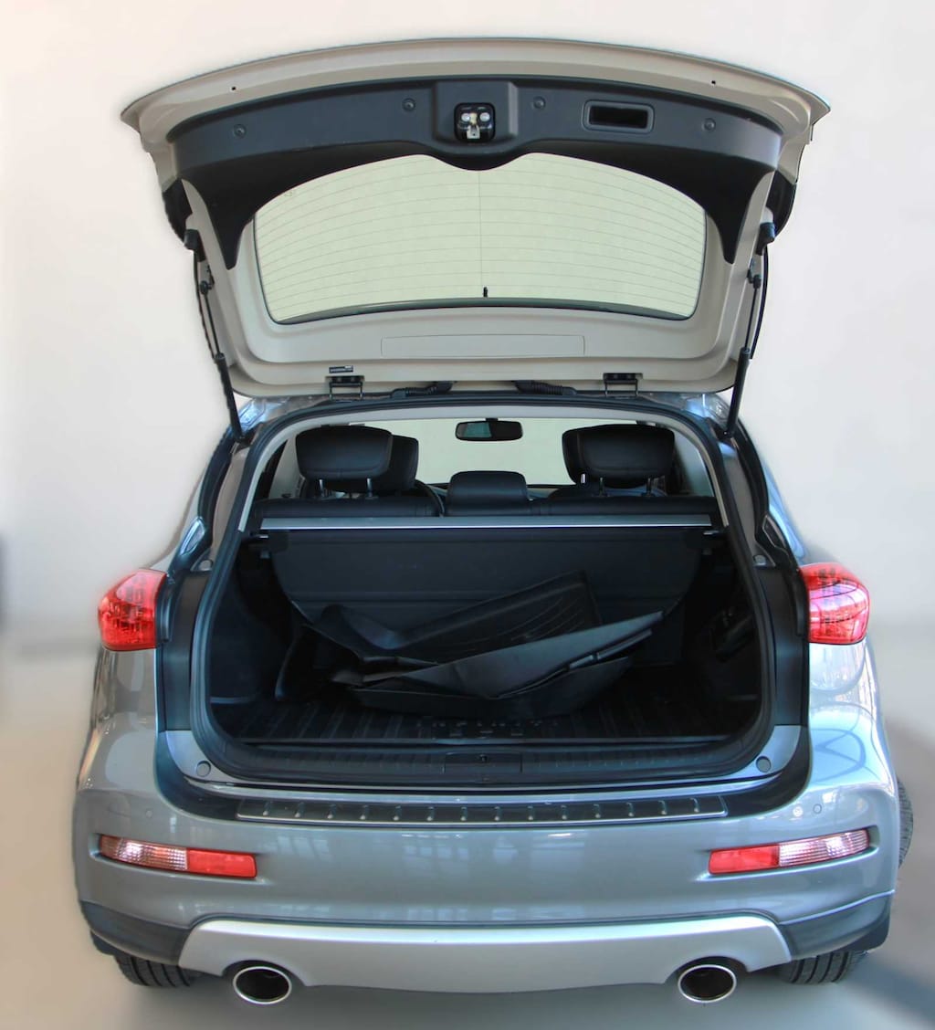 Leather Seats, Sunroof, All Wheel Drive, Heated Driver Seat, Satellite Radio, iPod/MP3 Input, Bluetooth®, Aluminum Wheels, Keyless Start, Dual Zone A/C, Heated Seats, Heated Leather Seats Rear Spoiler, Keyless Entry, Steering Wheel Controls, Child Safety Locks, Electronic Stability Control. INFINITI QX50 with Graphite Shadow exterior and Graphite interior features a V6 Cylinder Engine with 325 HP at 7000 RPM*. CARFAX 1-Owner