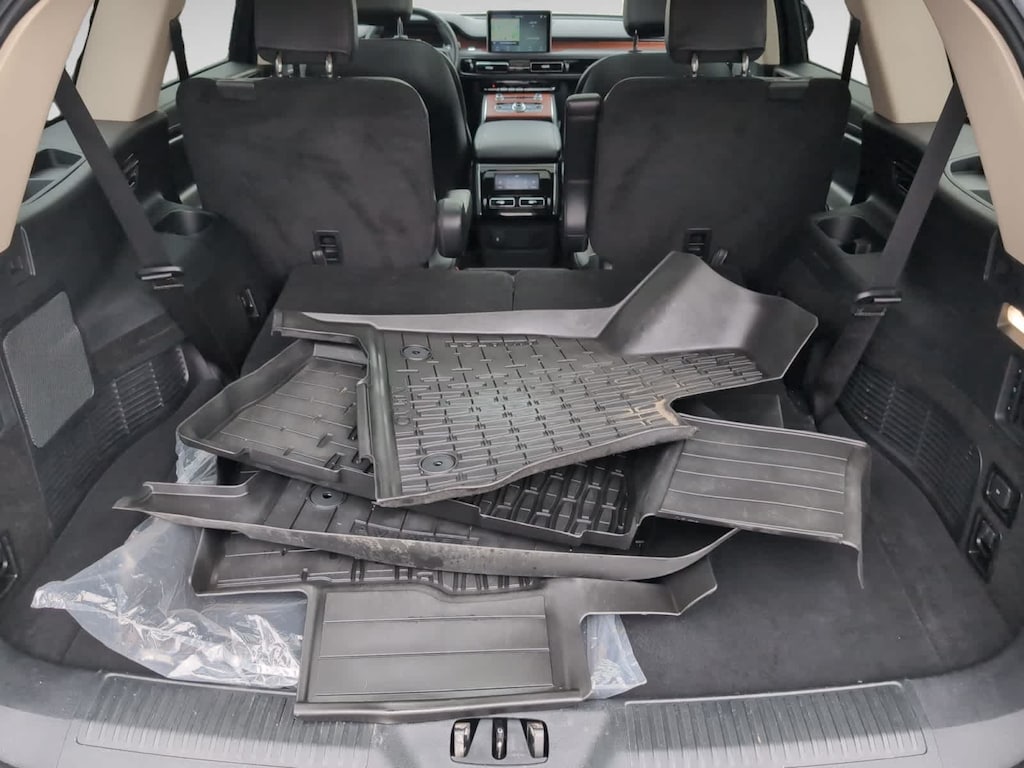 EQUIPMENT GROUP 201A Lincoln Co-Pilot360 1.5 Plus, front/side/rear parking sensors, Evasive Steering Assist, Reverse Brake Assist, Intelligent Adaptive Cruise Control, lane centering assist, stop-and-go and speed sign recognition, Active Park Assist 2.0, Elements Package Plus, Auto Air Refresh, active air monitoring system, Heated/Ventilated 2nd Row Outboard Seats, Heated Steering Wheel, Auto Heated/Ventilated Driver & Passenger Seats, Heated VisioBlade Wipers, Head-Up Display, Phone As A Key, Note: Phone as a key is not compatible w/fleet vehicles equipped w/fleet telematics, JET PACKAGE Wheels: 22 Black Aluminum, Tires: 275/40R22 107 W-Rated, Black Exterior Elements, grille insert, plinth and surround, fender/door badging, mirror skull caps, front/rear door spears, glass surrounds and roof rails, Body-Color Exterior Elements, lower front and rear fascia, door cladding and wheel lips, ALL-WEATHER 1ST & 2ND ROW FLOOR LINERS first and second row carpet floor mats, TRANSMISSION: 10-SPEED AUTOMATIC W/SELECTSHIFT (STD), ENGINE: TWIN-TURBOCHARGED 3.0L V6: auto stop-start technology (STD), EBONY, PREMIUM LTHR HEATED/VENTILATED FNT CAPTAINS CHAIRS: 10-way power driver and 8-way power passenger comfort seats w/power lumbar and driver seat memory.